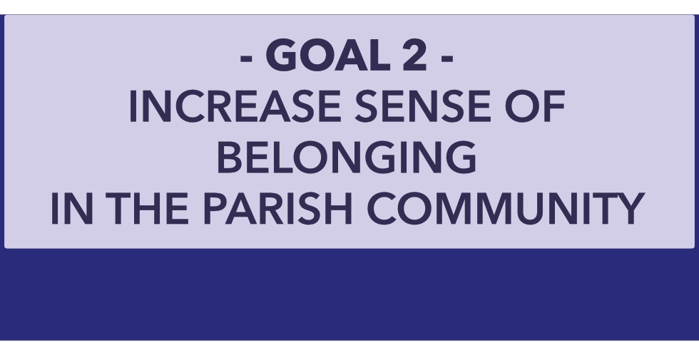 Goal 2: Increase Sense of Belonging in the Parish Community. Intentional collaboration with various ministries to establish cohesiveness, and instill in all parishioners the importance of being part of church community.